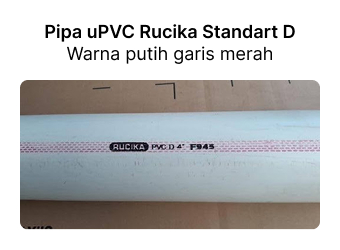 Pipa Rucika uPVC (Unplastized Polyvinyl Chloride) atau biasa disebut pipa PVC merupakan produk perpipaan yang dipakai pada instalasi air bersih, air kotor, dan air hujan pada bangunan rumah tinggal. Pipa PVC Rucika memiliki 4 jenis kelas, yaitu: