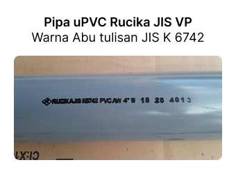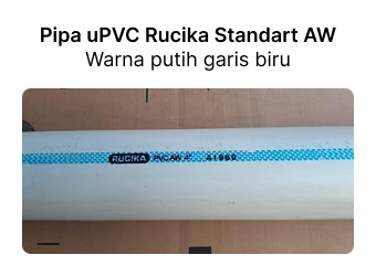 Ukuran pipa PVC Rucika dengan system penyambungan lem, dengan panjang pipa 4 meter per batang.